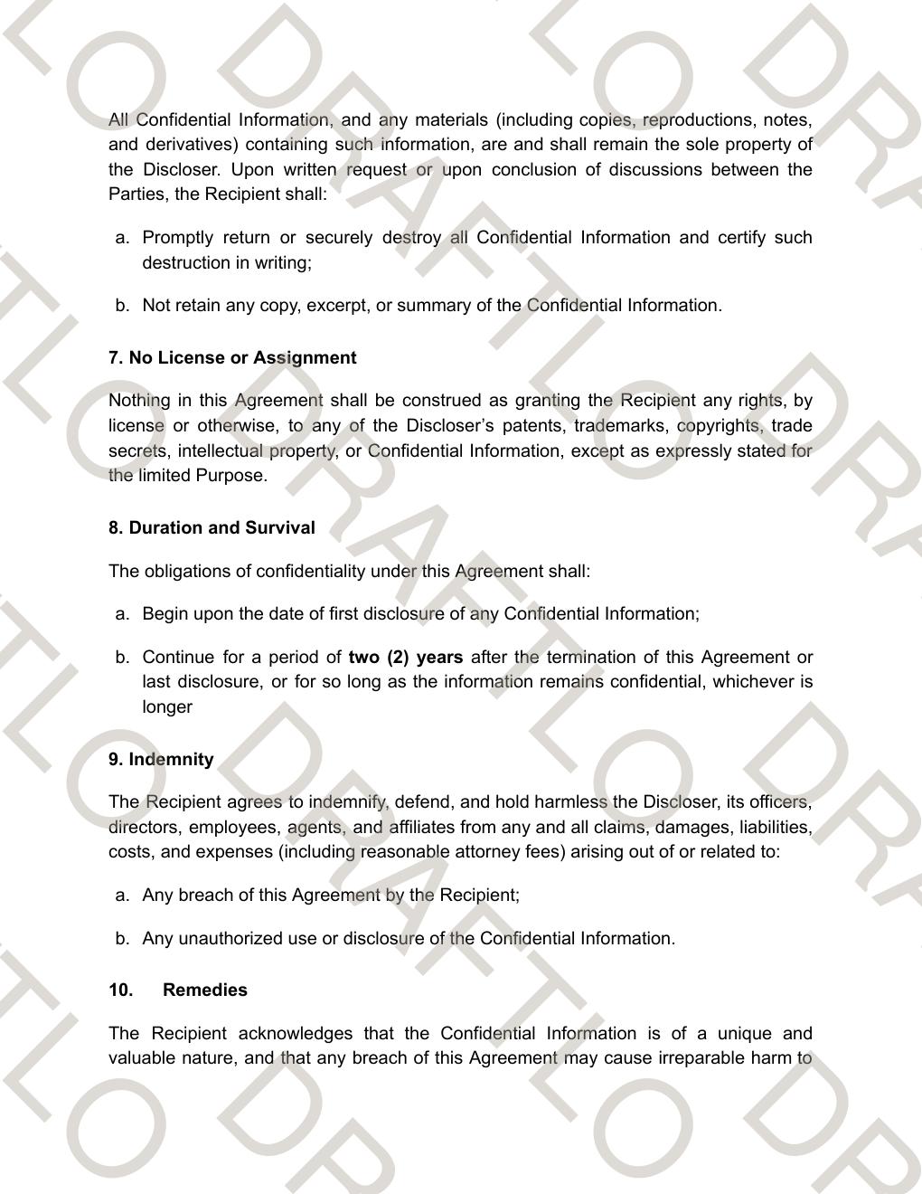 Key Differentiator: Uses a placeholder-based system ({{variables}}) for easy customization, Covers both mutual and one-way confidentiality arrangements, Drafted to support startups, SMEs, and enterprises alike, Applicable across multiple industries and business models, Legally structured and professionally written