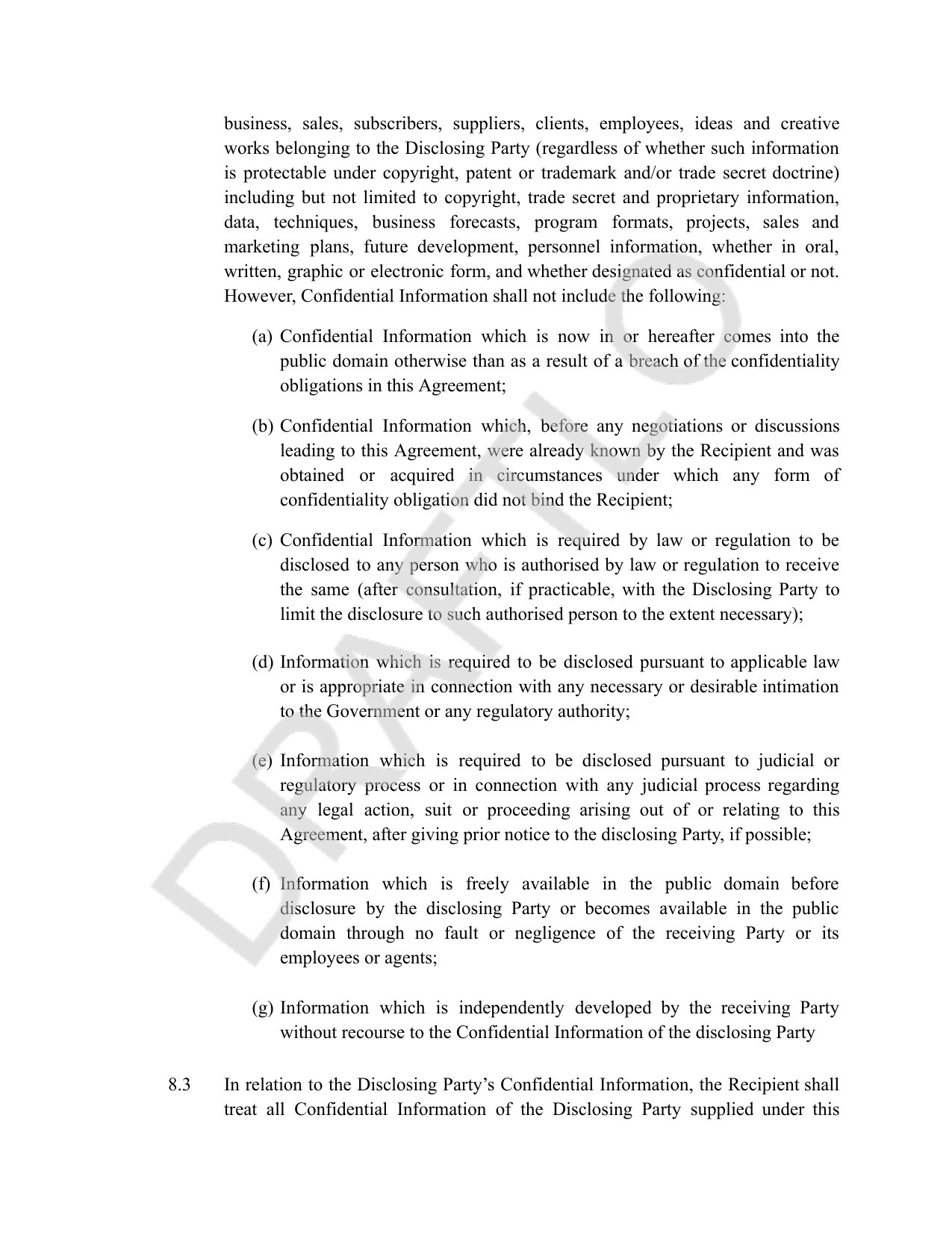 Disclaimer: This agreement does not constitute legal advice or legal services of any kind. This is merely a first draft provided for your ease. Please consult a lawyer before you finalise the draft.