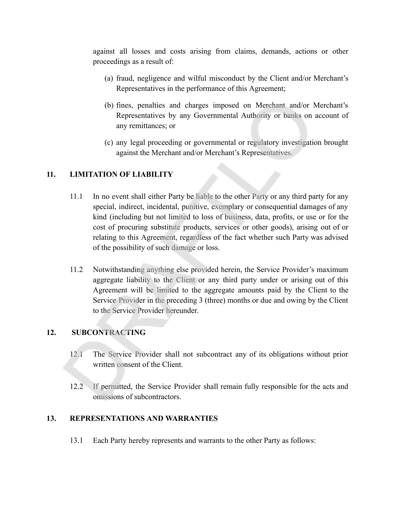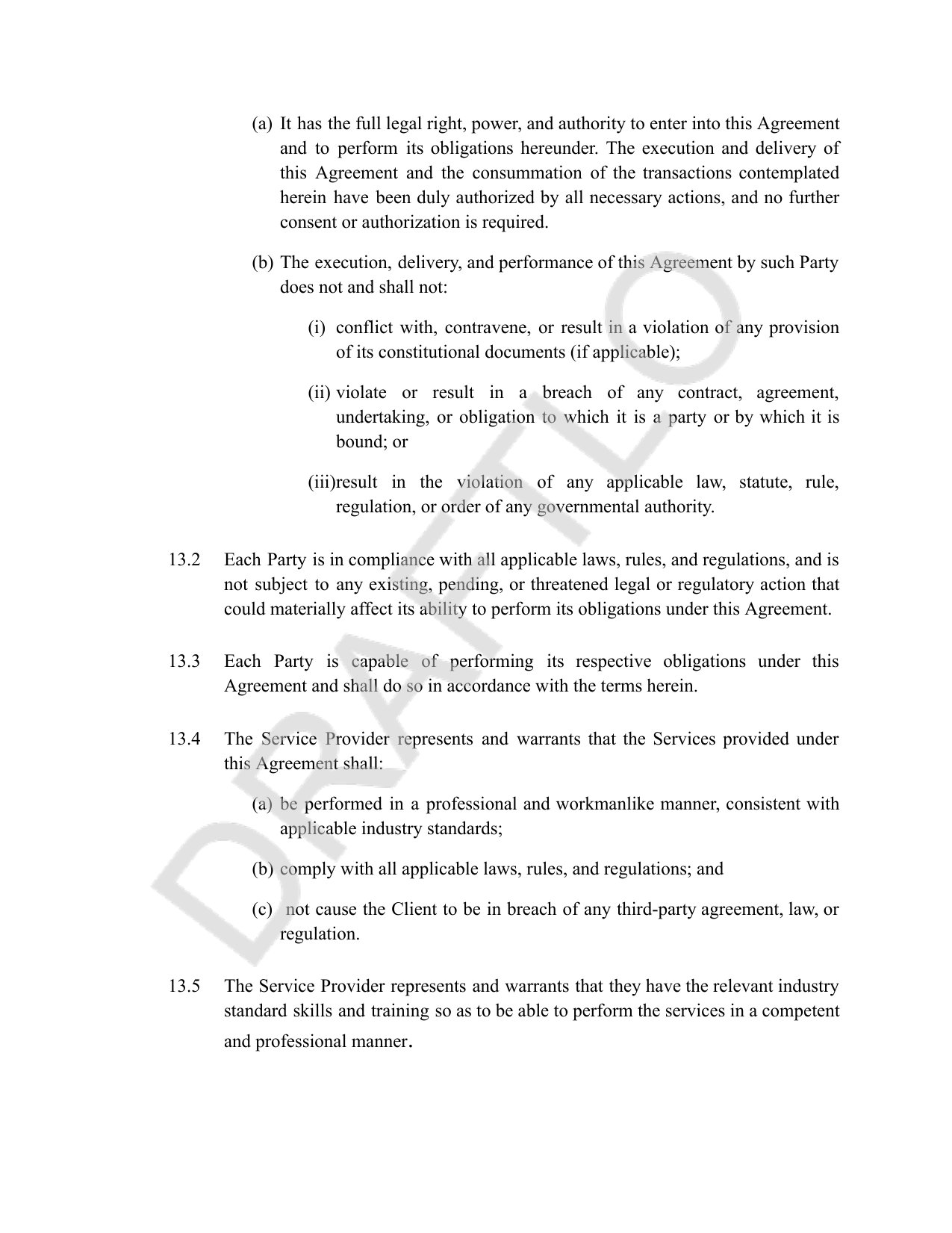 - Professional standards with industry-standard performance warranties and subcontracting restrictions
