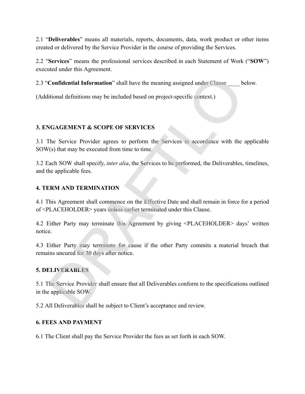 Key Differentiator: Establishes a master framework supporting multiple projects over time, Includes detailed IP assignment and ownership protections, Designed for high-value professional and consulting engagements, Provides comprehensive liability and confidentiality safeguards, Balances flexibility with strong legal enforceability