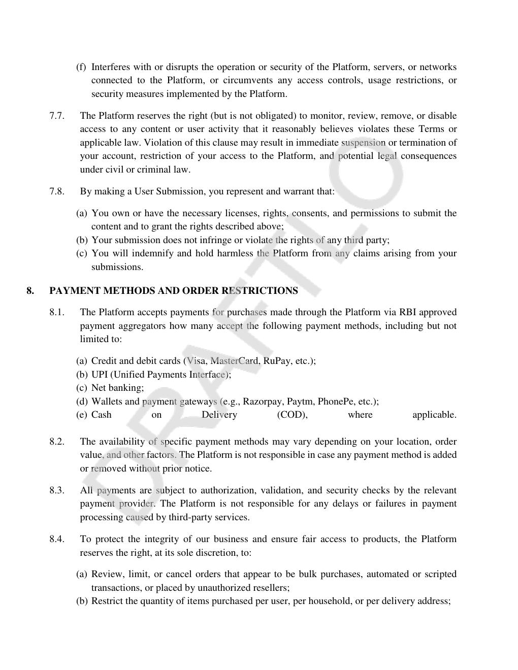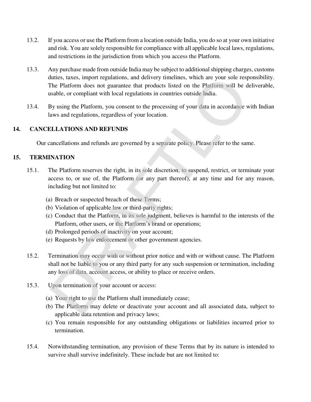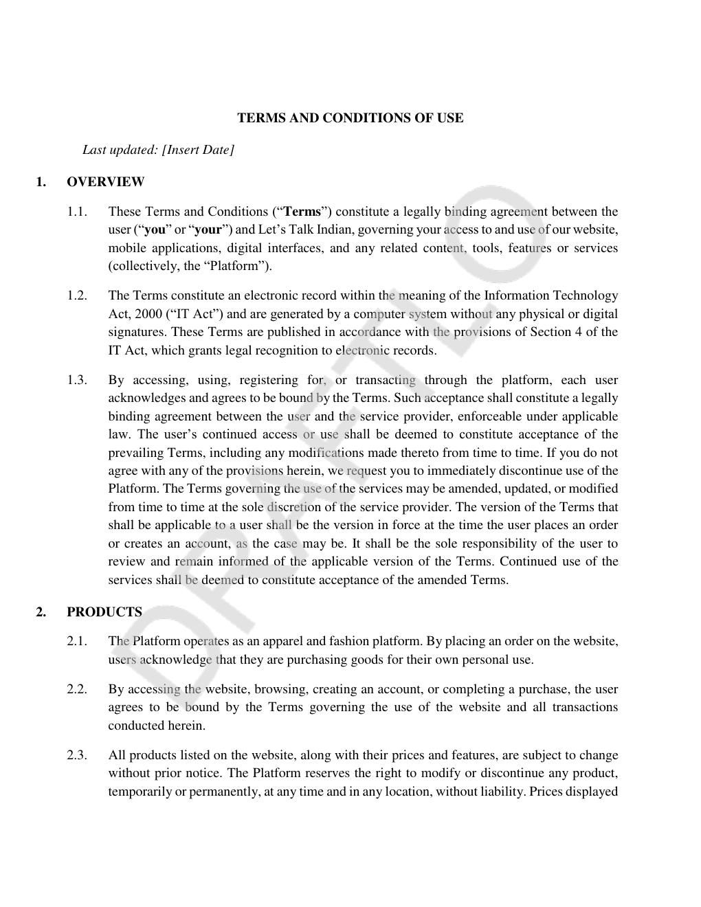 This document is a comprehensive Terms and Conditions template designed for Indian product businesses and digital platforms.